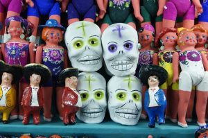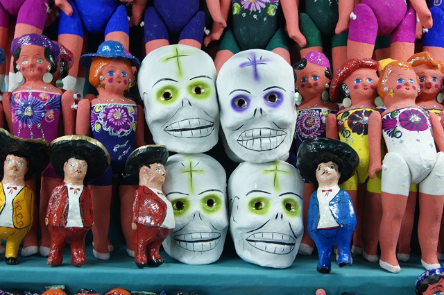 También se venden todos los insumos necesarios para montar los altares para recibir a los difuntos: papel picado, copal, flores de cempasúchil, aserrín, ceniza y múltiples adornos. Además de una gran oferta de juguetes tradicionales.